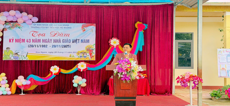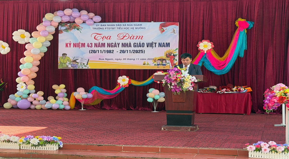 Trong không khí trang trọng, thầy Ngô Ngọc Tấn Bí thư Chi bộ, Hiệu trưởng nhà trường đã phát biểu, ôn lại truyền thống vẻ vang của ngành giáo dục và ghi nhận những nỗ lực không ngừng của đội ngũ thầy cô giáo Trường PTDTBT TH Hẹ Muông trong thời gian qua.