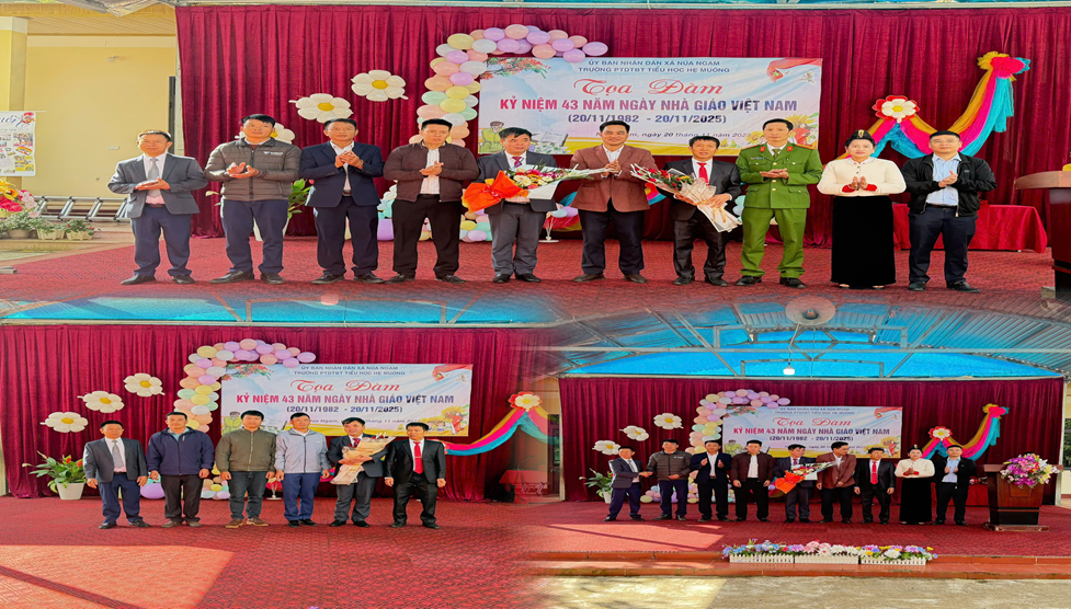 Đến dự buổi tọa đàm có đồng chí Nguyễn Xuân Thuận Ủy viên Ban thường vụ Đảng ủy – Phó chủ tịch Hội đồng nhân dân xã đại diện Đảng ủy, HĐND – UBND xã Núa Ngam lên phát biểu, tặng hoa động viên và chúc mừng nhà trường.